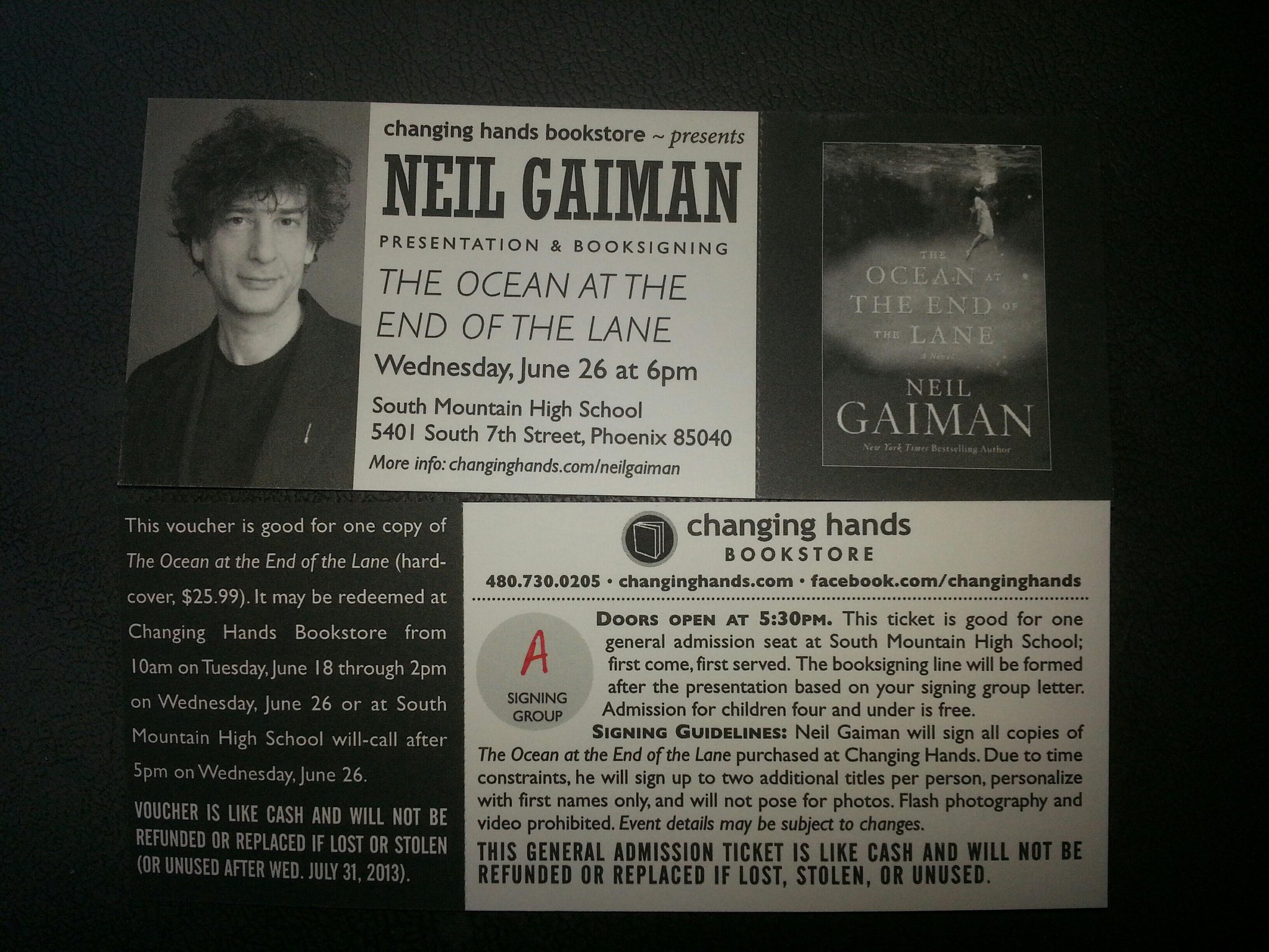 Mr. Gaiman stopped what he was doing, and asked if everything was ok out in the audience. How very embarrassing for said child's mother.